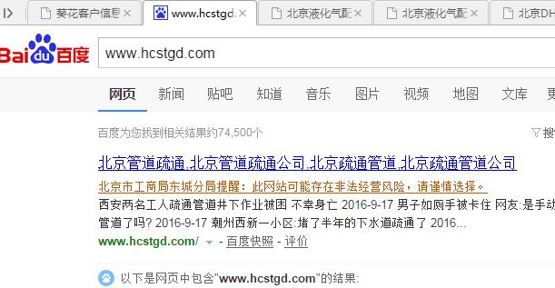 那一排黃色的字,“北京市工商局東城分局提醒”,這情況,以前真沒有遇見過,F(xiàn)在工商局也介入搜索結(jié)果了。