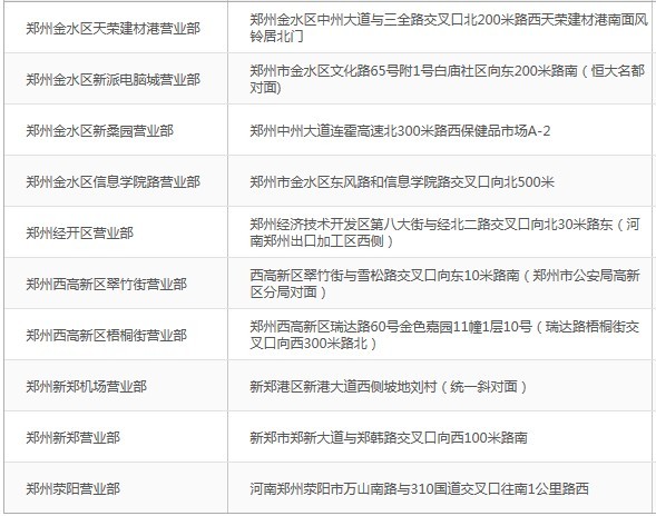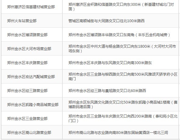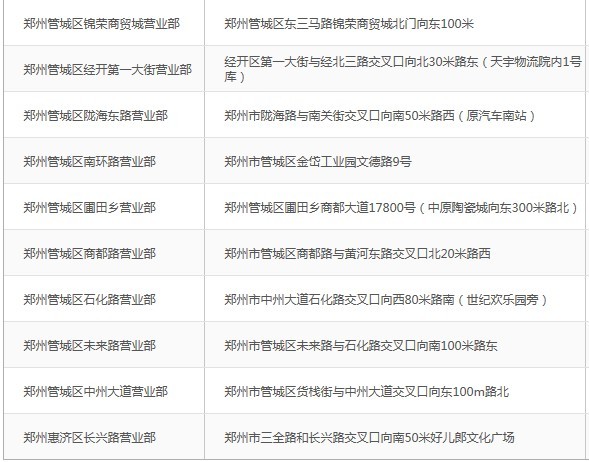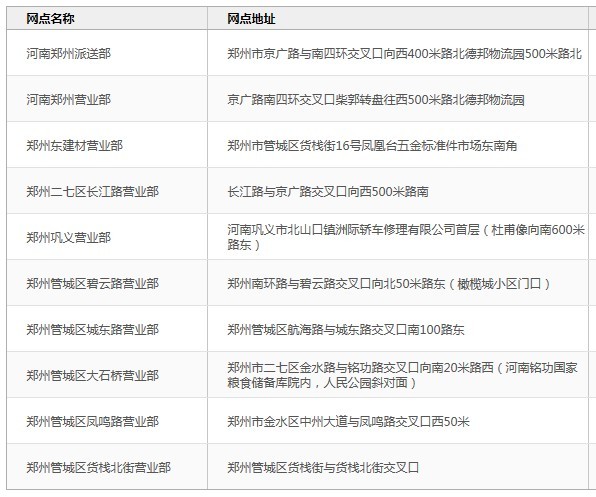 鄭州德邦物流營業(yè)網(wǎng)點表: