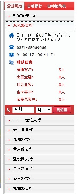 鄭州招商銀行的網(wǎng)讓上,有各個網(wǎng)點的排隊信息: