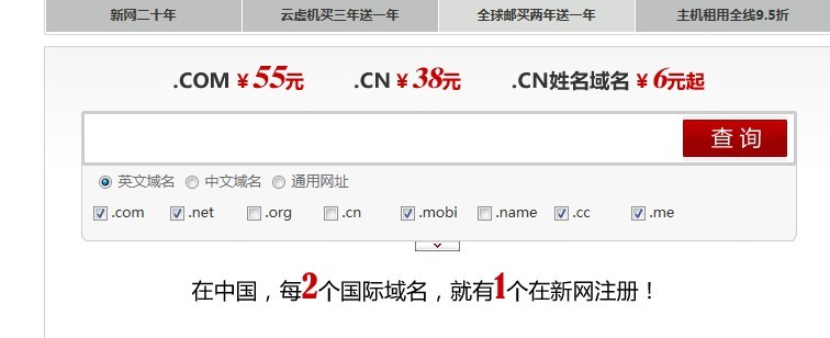 新網(wǎng)首頁(yè)的域名查詢(xún)界面又改版了