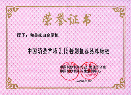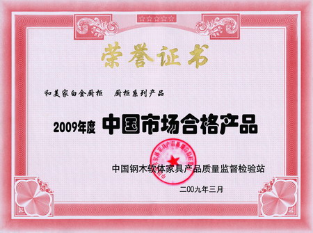 和美家白金櫥柜獲2009年度中國(guó)市場(chǎng)合格產(chǎn)品