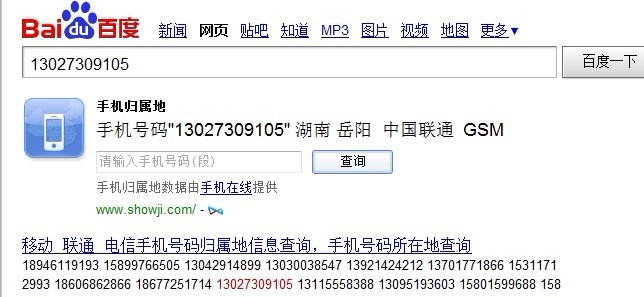 13027309105,這個(gè)手機(jī)號(hào),給我的手機(jī)打電話,鈴聲響一下,感覺還不到一秒鐘,就掛了。 我又上百度查了一下這個(gè)手機(jī)號(hào)的地理位置,結(jié)果如下: