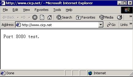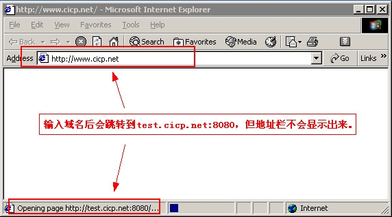 另外,這里因?yàn)槲覀冞x取了“隱藏跳轉(zhuǎn)域名”,那么在地址欄中顯示的依然是域名www.cicp.net而不會(huì)顯示http://test.cicp.net:8080,如下圖。