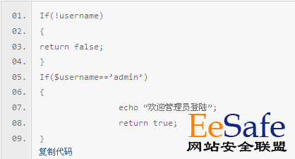 ![]() 很明顯,這是判斷登陸的是否是管理員,很多網(wǎng)站也用這個邏輯判斷其他重要的條件。 看上去這段代碼很正確,但其實有個致命的錯誤,它假定$isadmin在沒賦值的時候是空值,但由于php語言為了使php代碼訪問用戶的輸入盡可能容易,php把輸入數(shù)據(jù)作為全局變量來處理。所以攻擊者可以創(chuàng)建任意全局變量并賦值。 如何避免這樣最容易被會略的問題,如果你網(wǎng)站使用的是PHP程序開發(fā),如果你已經(jīng)這樣做了,并且web應(yīng)用程序變量很多的話,最節(jié)省效率的辦法就是修改php的track_vars選項。 2.網(wǎng)站雙條件認證安全問題 判斷用戶名和密碼,先判斷是否為空,然后從數(shù)據(jù)數(shù)據(jù)庫找同時符合條件的數(shù)據(jù)。 如果采用這樣的邏輯將直接導(dǎo)致sql注入。 如果你要增加或修改這樣的功能,程序邏輯應(yīng)該是:首先,找到數(shù)據(jù)庫中用戶名符合的數(shù)據(jù)(當(dāng)然用戶名在數(shù)據(jù)庫中必須是唯一的),然后查看這條數(shù)據(jù)中對應(yīng)的密碼是否和要驗證的密碼相同,這樣就避免雙認證問題。 3.用用戶名去判斷用戶權(quán)限 很多網(wǎng)站都有這樣的問題,比如
