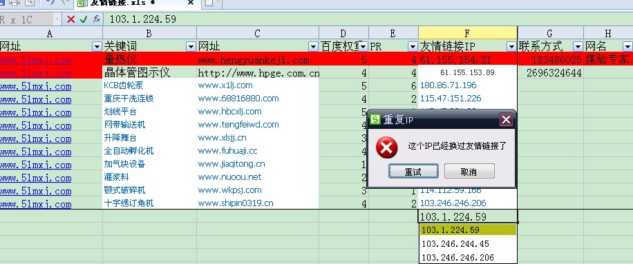 | No.1:不宜交換快照不正常的?煺帐菣z查站點(diǎn)整體表現(xiàn)的最好的數(shù)據(jù)之一?煺兆詈檬歉籼斓,三天之內(nèi)的快照次之。如果超出7天,甚至快照是很久之前的站,那么你就最好不要交換了,當(dāng)然我們也不要對(duì)快照做過(guò)于苛刻的要求,就拿6.28百度的K站事件,很多正規(guī)高權(quán)重的站點(diǎn)都可能出現(xiàn)快照不正常的情況。 No.2:不宜交換交叉鏈接。除非你有這方面的需求,否則的話筆者是堅(jiān)持不建議大家做這種友情鏈接。如果你的站點(diǎn)有大量的交叉鏈接,很容易被搜索引擎查出,并認(rèn)為你是在做站群,或者是購(gòu)買鏈接。其所帶來(lái)的影響你懂得。對(duì)于這點(diǎn),筆者的建議是借助EXCEL文檔,做成一個(gè)友情鏈接記錄單,如下圖所示,我們可以清楚的記錄友鏈的交換情況。