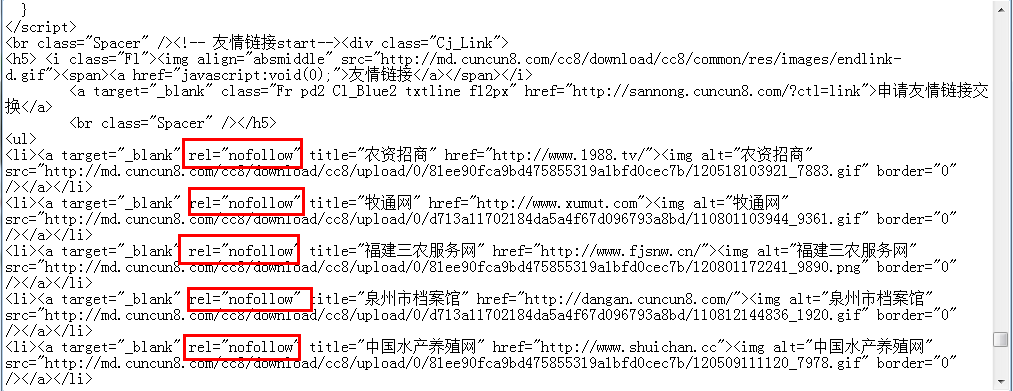 ![]() No.3:不宜交換內(nèi)頁(yè)鏈接。這一點(diǎn)并不是絕對(duì)的,假如對(duì)方站點(diǎn)的內(nèi)頁(yè)權(quán)重非常的高,也是可以考慮的,如果對(duì)方的站點(diǎn)時(shí)內(nèi)頁(yè)同時(shí)權(quán)重收錄等等不如你,那么即使對(duì)方說(shuō)的多好聽(tīng),筆者都不建議你與其進(jìn)行交換。 No.4:不宜交換含js代碼的鏈接。這點(diǎn)是好多朋友換鏈接的時(shí)候忽視的。檢查的方我們可以把鼠標(biāo)至于對(duì)方站點(diǎn)的友鏈上 ,看一下?tīng)顟B(tài)上的地址是否是跳轉(zhuǎn)地址,同時(shí)我們可以查看站點(diǎn)的頁(yè)面代碼,看看是否有跳轉(zhuǎn)的代碼,如下圖所示。 No.5:不宜交換導(dǎo)出鏈接太多的鏈接。根據(jù)蛋糕原理。分的人越多,你得到的就越少。即使對(duì)方的權(quán)重是9。但他有好幾百個(gè)友情鏈接。根據(jù)谷歌PR計(jì)算公式:PR(a)=d+(1-d)*(網(wǎng)頁(yè)A的PR值/網(wǎng)頁(yè)A導(dǎo)出的鏈接)+……(1-d)*(網(wǎng)頁(yè)N的PR值/網(wǎng)頁(yè)N導(dǎo)出的鏈接)。根據(jù)這個(gè)公式算下來(lái),從這個(gè)站點(diǎn)上你所傳遞過(guò)來(lái)的權(quán)重少之又少,對(duì)此我們?cè)诮粨Q友鏈的時(shí)候,不要只是關(guān)注對(duì)方權(quán)重有多高,導(dǎo)出鏈接往往影響更大。 No.6:不宜交換含有nofollow標(biāo)簽的鏈接。nofollow標(biāo)簽做優(yōu)化的人都應(yīng)該清楚它的用處吧。他會(huì)阻止蜘蛛進(jìn)行跟蹤,同時(shí)也阻止了權(quán)重的傳遞。查詢的方法也很簡(jiǎn)單,我們只要直接打開(kāi)對(duì)方站點(diǎn)頁(yè)面的源文件,查看其中nofollow的事情情況。當(dāng)然也并不是一定不換,如果是一些流量大的站點(diǎn)可以換,雖然有該標(biāo)簽,但是這也可以為我們的站點(diǎn)帶來(lái)一定的流量。就如同我們知道百度經(jīng)驗(yàn)的外鏈有nofollow標(biāo)簽,但是百度經(jīng)驗(yàn)的外鏈可以很好的為我們帶來(lái)流量,我們也是可以適當(dāng)?shù)慕ㄔO(shè)的。